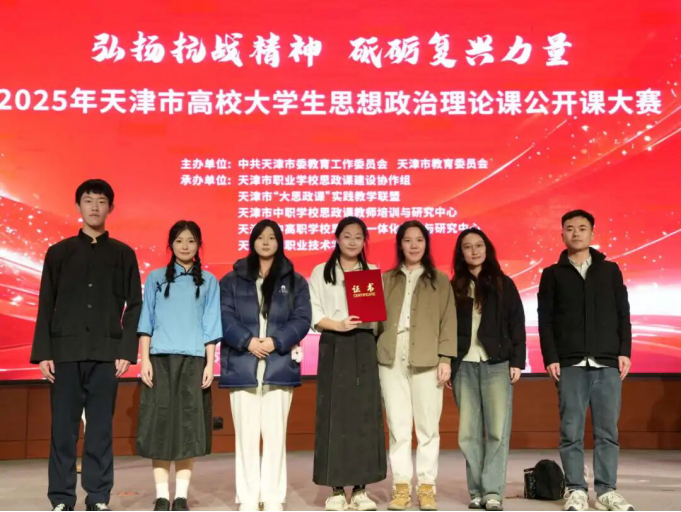 近日,由天津市教育工委、市教委主办的2025年天津市高校大学生思想政治理论课公开课大赛圆满落幕。经过校级初赛、市级复赛及决赛的多轮激烈角逐,天津海运职业学院参赛团队凭借作品《从枪炮中走来的民族强音:国歌声里的抗战精神》从80多支参赛队伍中脱颖而出,荣获大赛三等奖,指导教师团队获评“优秀指导教师”称号,作品以师生协同的创新实践诠释了伟大抗战精神的时代内涵与育人价值。