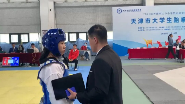 由天津市教育委员会主办的2025年天津市大中小学阳光体育系列活动——天津市大学生跆拳道比赛于2025年11月15日在天津工业大学举行。本次赛事规模盛大,吸引了全市33所高校423名运动员参赛,天津海运职业学院派出的11名选手参赛,经过激烈角逐,获得1金、6银、6铜的佳绩。