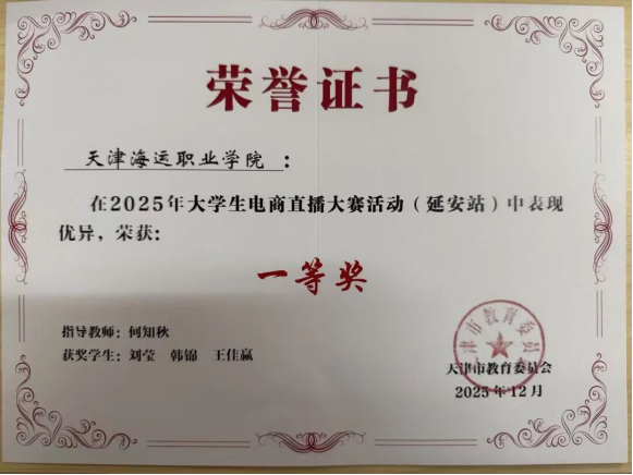 日前,由天津市委教育工委、天津市教委与陕西省延安市政府联合主办的“京津冀同上一堂大思政课”暨大学生电商直播大赛(延安站)成绩揭晓,由航运经济系电子商务专业教师何知秋指导,刘莹、韩锦、王佳赢三名同学组成的参赛团队,荣获大赛总决赛一等奖,创下学院参加该赛事的历史最佳成绩,实现新突破。本次大赛以“红创中国 强国有我”为主题,吸引了京津冀地区49所高校的100支团队、500余名师生同台竞技。