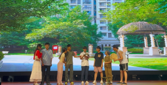 本次比赛由天津市教育委员会主办,高校组为本科与高职院校同赛道参评。学院报送的作品《法满幸福里》以天津本土社区为背景,围绕高空抛物、姓名权、老年人权益保护等与民生领域息息相关的法治议题,通过充满津味烟火气的戏剧化呈现,把抽象的法律条文转化为鲜活生动的邻里故事。作品紧扣“宪法法治宣传”“学校法治实践”和“青年法治成长与担当”等主题,生动诠释了法治精神如何深入基层、护航美好生活。“参与《法满幸福里》的创排,让我真正体会到法律不是课本上冰冷的条文,而是生活中温暖的守护。”来自航运经济系的学生主演张佳泽深有感触地说,“这种‘沉浸式’的法治学习,比任何一堂理论课都更让人印象深刻。”