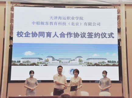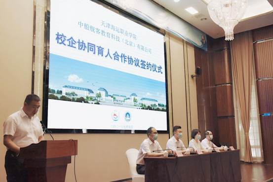 为全面贯彻全国职业教育大会精神、落实《国家职业教育改革实施方案》要求,深化产教融合、校企合作,推进职业教育课程改革,构建高水平技术技能人才培养体系,2021年7月5日,天津海运职业学院举行国际邮轮校企协同育人合作签约仪式。中船舰客教育科技(北京)有限公司总经理鲁慧娟、校企合作部部长夏海滨、华北区顾问张茂友,院长吴宗保、副院长王明春,国际邮轮乘务和旅游管理系、干部人事处、教务处、科研处、继续教育中心等部门负责人、教师和学生代表等出席会议。会议由科研处处长宋梦华主持。