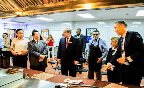 加勒比董事局及夫人在培训中心体验了作为加勒比学员从报到、接受培训、员工用餐、餐饮服务等全部培训生活。费恩先生和马魁君书记分别为参加烹饪培训、摆台培训、客房培训的优胜者颁发了培训合格证书。