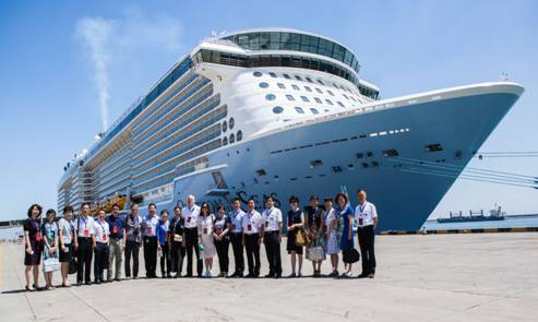 随后,联盟院校各位领导在加勒比游轮公司全球学习和运营副总裁蒂姆琼斯的带领下参加了“赞礼号”首航仪式。大家表示非常震撼。同时天津海运职业学院与加勒比游轮公司的校企合作,为学生搭建了可靠的海外就业平台,对学生丰富人生阅历、学习国际先进企业文化和管理经验提供了最直接的渠道。
