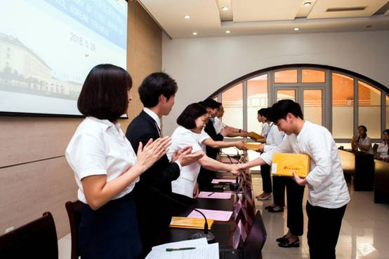 Johnnie Park代表韩国培训生发言。他表示,中国的强大并不是仅仅是因为他的规模,她的伟大在于人民的精神。这里所有的人对我们都很有耐心,一直试图帮助我们。在此学习期间,也希望有机会交流我们的文化,教大家韩语,彼此成为朋友。