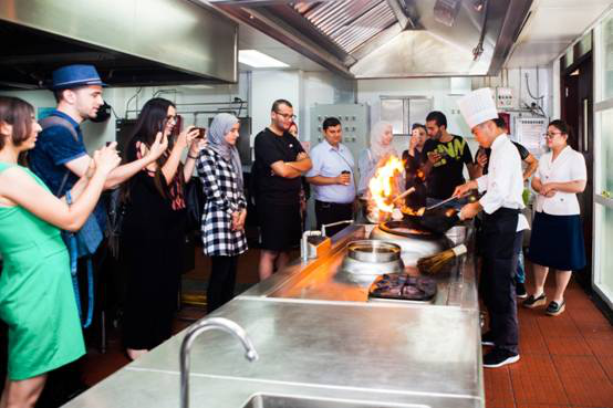 我院组织了丰富多彩的交流活动。突尼斯学生分为两组分别体验了中餐烹饪专业老师现场教学中国传统菜肴“宫保鸡丁”的做法;西餐面点专业老师现场指导学生进行面点制作。随后,访问团参观了天象馆,不仅观看了星空、天体坐标、壮丽恢弘的宇宙空间,还看到了经过计算机处理的穹幕影片,欣赏神秘的海底奇观等动态的精彩画面。