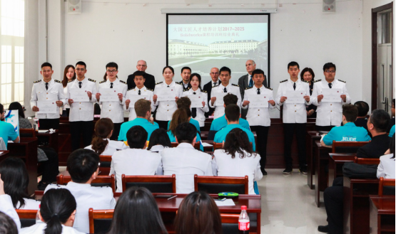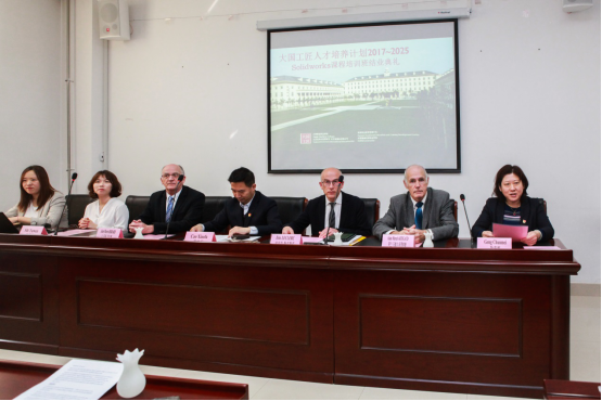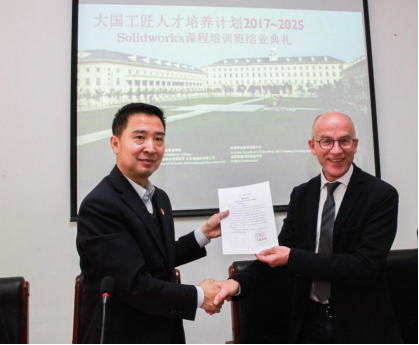 4月26日上午,《大国工匠人才培养计划2017~2025》——2019年中法交换生及Solidworks课程班结业典礼在学院办公楼205会议室举行。欧洲职业教育发展中心中国总代表施雨妏、法国勒摩尼耶学院副校长埃里克、教授Jean Marie、Alain、学院党委副书记曹晓发、轮机工程系主任杜金印、工程技术系主任高松出席。全体中法项目交换生参加结业典礼。国际交流处处长耿春梅主持结业典礼。