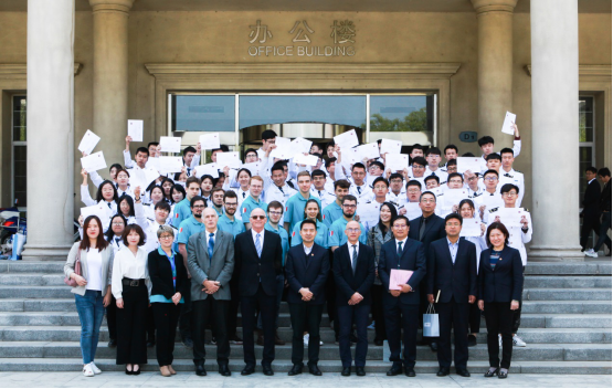 中法两校领导为同学们颁发了结业证书、互换纪念礼物,并与同学们合影留念。