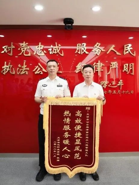 座谈会上,吴院长代表学院对公安津南分局给予学院工作的大力支持和帮助表示衷心的感谢,并向津南分局赠送“高效便捷显风范,热情服务暖人心”锦旗。吴院长表示,市出入境管理局及津南分局领导了解到学院涉外事务受疫情影响情况后,按照“特事特办、急事急办”原则,加急安排杨宁天警官与学院沟通落实,解决了学院38名学员的燃眉之急,彰显了津南公安为民情怀。公安津南分局高站位、高水平、高效率的工作让学院师生深受感动,也值得学院师生学习。感谢公安津南分局长期以来对学院工作的关心和支持,希望今后进一步加强对学院安全稳定、留学生管理工作的指导。
