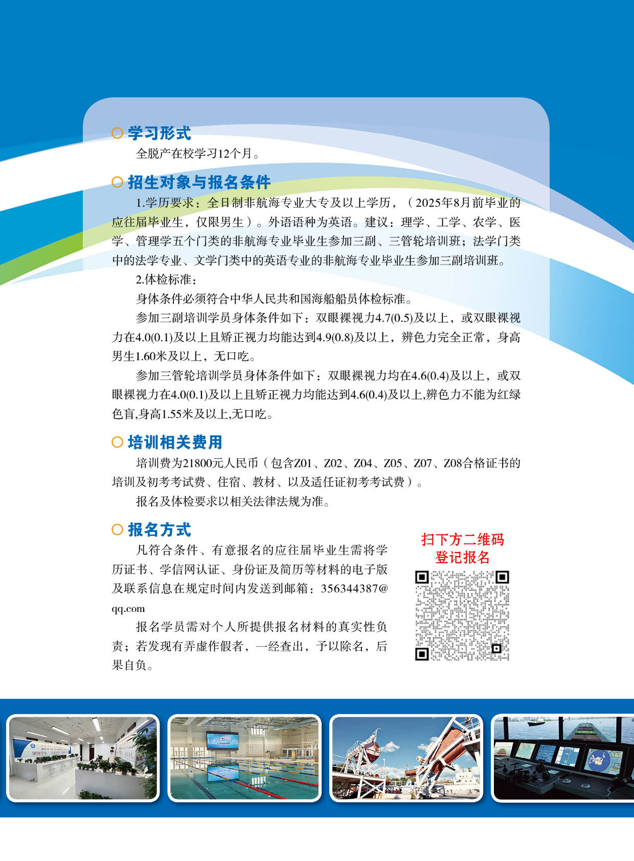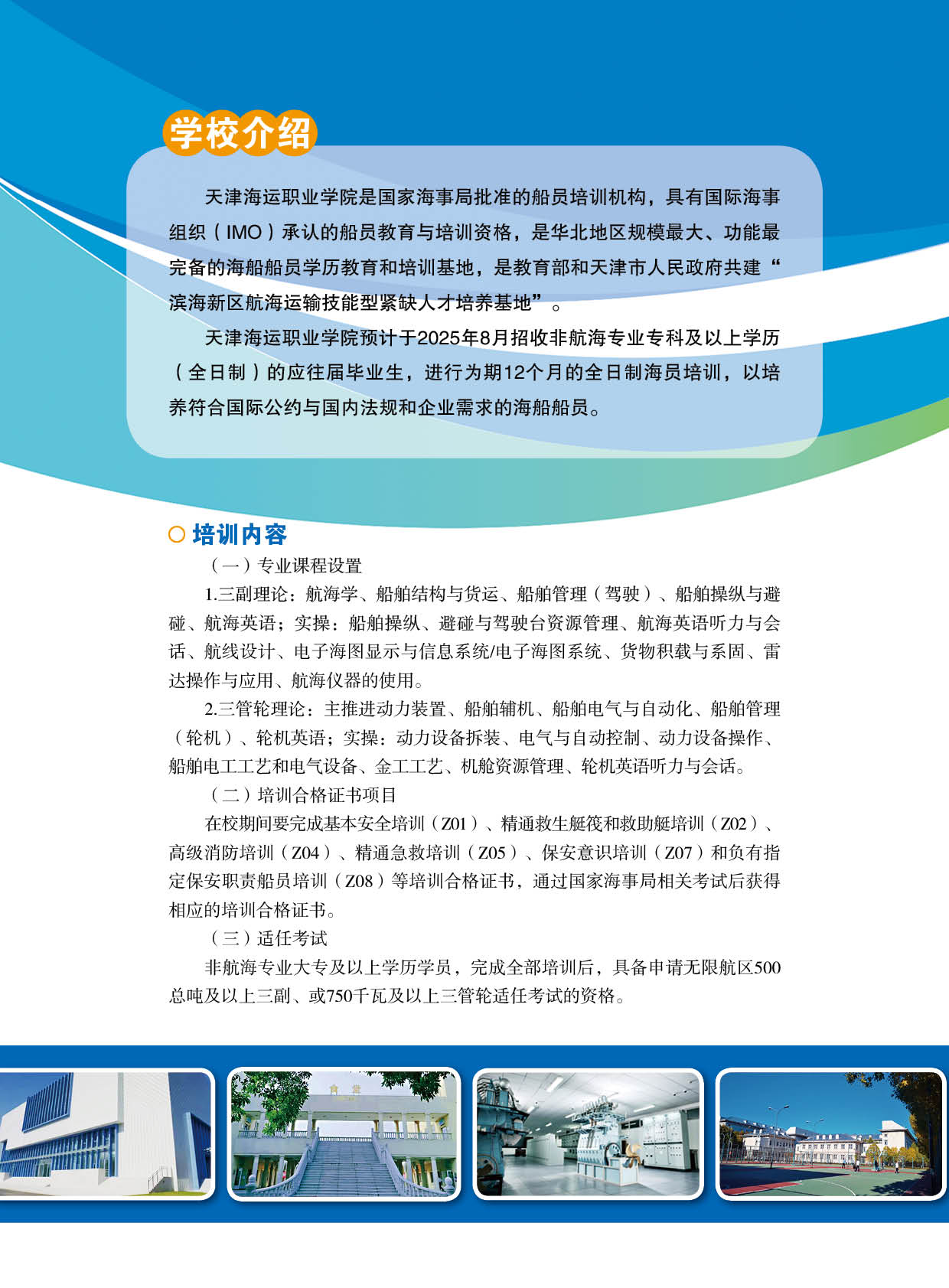 天津海运职业学院非航海专业大专及以上毕业生三副/三管轮招生简章