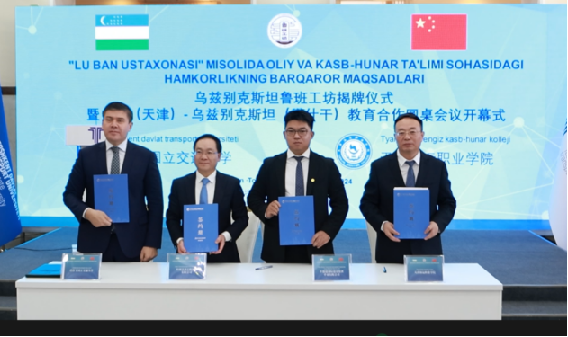 乌兹别克斯坦鲁班工坊由天津海运职业学院与塔什干国立交通大学共同建立,是我市在海外建设的第24个鲁班工坊,采取“工程实践创新项目”教学模式,聚焦“数字乌兹别克斯坦—2030”战略,开设信息技术和现代物流管理2个专业。陈敏尔实地考察鲁班工坊教学中心,了解教学场景、培训方式、教材配备、实践效果等情况,与乌方师生互动交流。