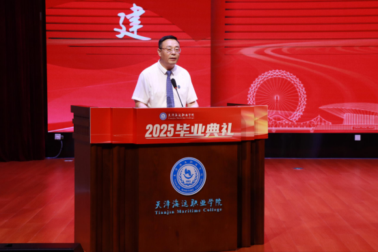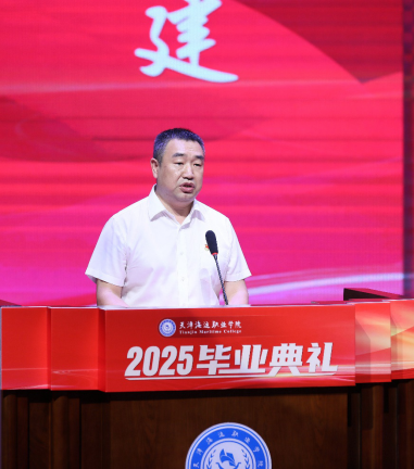 于忠武院长代表学院向2025届毕业生表示热烈祝贺和美好祝愿,勉励同学们用理想信念引领人生选择,用永葆匠心迎接未来挑战,用不懈奋斗擦亮青春底色,牢记“知学善建、诚达思远”的海运校训,弘扬“全力以赴、迎难而上、同心协力、拼搏创新”的海运精神,以无畏之姿搏击风浪,以奋进之势勇立潮头,在海洋强国建设、民族复兴征程中堪大任、谱华章,用奋斗和奉献书写属于你们的精彩人生。