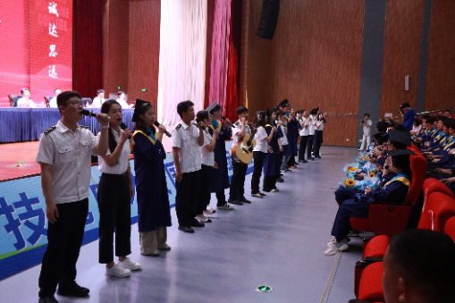 毕业典礼在雄壮的国歌声中拉开帷幕,全场起立,奏唱国歌。教务处处长宋梦华宣读《关于2025届高职学生毕、结业的决定》,党委学生工作部部长王洋宣读《关于表彰2025届优秀毕业生的决定》,希望广大同学以优秀毕业生为榜样,刻苦学习基础知识,熟练掌握专业技能,不断提高自身综合素养,努力发展成为高素质、强技能、善创新、可持续发展的高技能人才。
