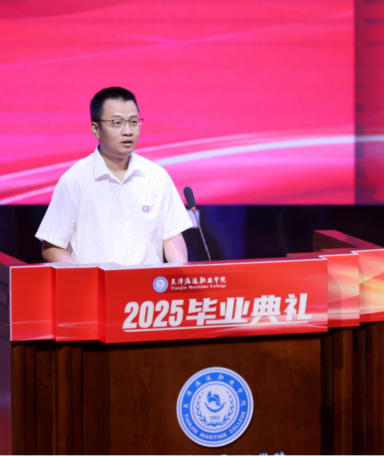 盛夏如约,骊歌声起。7月5日,天津海运职业学院2025届学生毕业典礼在水上教学训练中心报告厅举行。学院领导班子成员、各教学系部和职能部门领导、辅导员、家长和校友代表等齐聚一堂,共同见证2025届毕业生圆满完成学业、开启人生崭新篇章。学院副院长王明春主持毕业典礼。