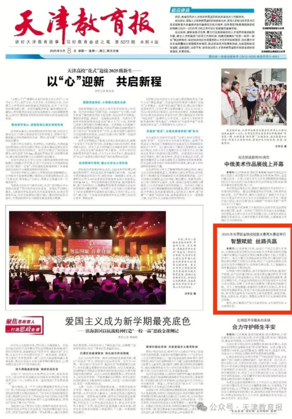 9月8日,《天津教育报》刊发文章《2025年世界职业院校技能大赛两大赛道举行 智慧赋能丝路共赢》,报道由塔什干国立交通大学承办、天津海运职业学院协办的2025年世界职业院校技能大赛中亚赛区(乌兹别克斯坦)赛事在塔什干国立交通大学举行。