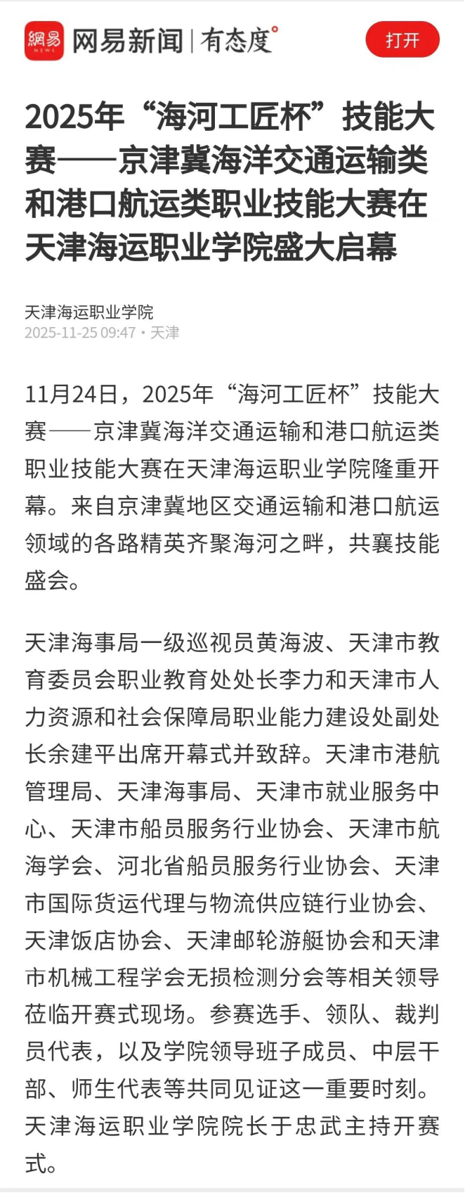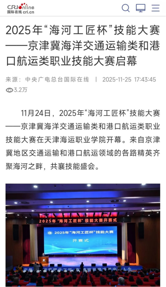 11月24日-25日,2025年“海河工匠杯”技能大赛——京津冀海洋交通运输类和港口航运类职业技能大赛在天津海运职业学院举行。大赛汇聚了来自52家单位的174支队伍、329名选手同台竞技,创下了天津市涉海类赛事规模与赛项数量的历史之最。本次大赛既是检验专业本领的竞技舞台,更是彰显职业风采、传承工匠精神的生动课堂,全面契合京津冀协同发展以及港产城深度融合发展的战略需求,是落实科教兴市和人才强市战略的生动实践。