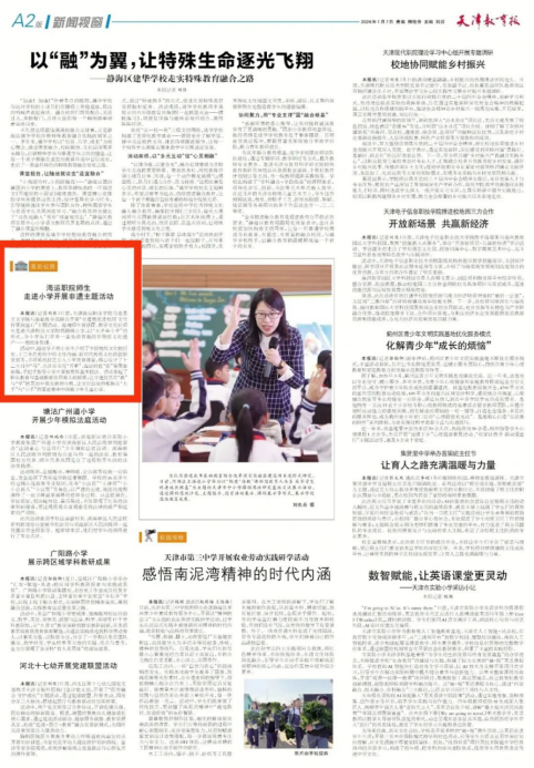 1月7日,《天津教育报》刊发文章《海运职院师生走进小学开展非遗主题活动》,报道天津海运职业学院海魂师生宣讲团、数学文化社师生走进天津科技大学附属柳林小学,以“大手牵小手”的形式,为小学生们带来一堂生动有趣的非物质文化遗产——剪纸体验课。