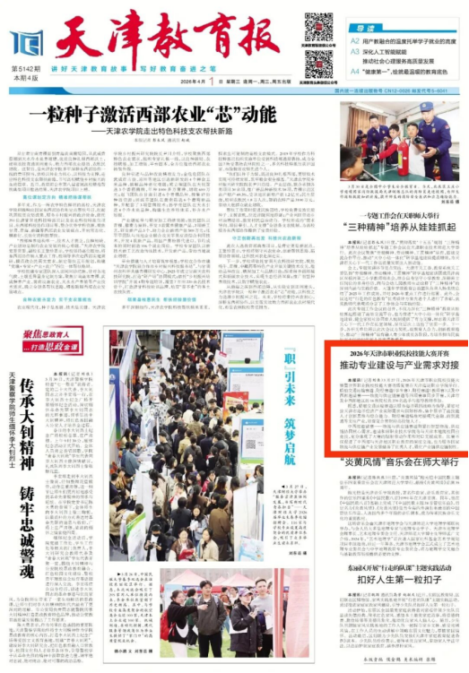 4月1日,《天津教育报》头版刊发文章《2026年天津市职业院校技能大赛开赛 推动专业建设与产业需求对接》,报道2026年天津市职业院校技能大赛暨世界职业院校技能大赛省级复赛在天津海运职业学院举行。船舶交通运输赛道、财经赛道(学生赛)、财经赛道(教师赛)以及中西部邀请赛——物流与供应链赛道等四项赛事同步开赛,天津市及中西部地区的16所院校共270名选手与指导教师参加。