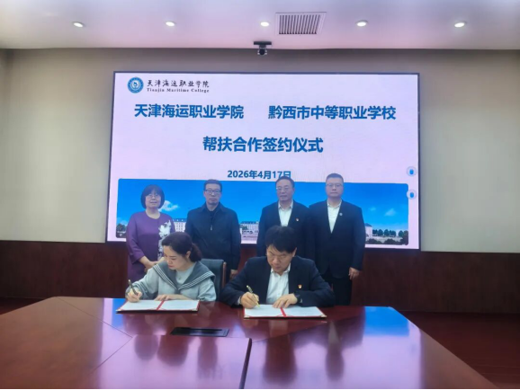 为深入贯彻落实教育领域东西部协作和对口支援工作的有关要求,在民建天津市委会、天津中华职业教育社的统筹推动下,天津海运职业学院与贵州省黔西市中等职业学校正式建立校际帮扶合作关系。为切实推动各项帮扶措施落地见效,4月17日,民建天津市委会专职副主委张荃、天津中华职业教育社三级调研员王爱云、黔西市中等职业学校副校长张豫一行7人莅临天津海运职业学院调研交流,双方围绕津黔职业教育结对帮扶、校际资源共享等事宜深入座谈,并现场签订校际《帮扶合作协议》。院长于忠武,副院长张雷,对外合作交流办公室、继续教育学院、邮轮旅游系主要负责同志参加座谈,会议由王爱云主持。