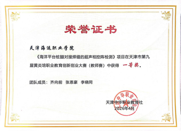 海洋工程装备系齐向前、张恩豪、李晓同团队一等奖作品《海洋平台桩腿对接焊缝的超声相控阵检测》深度融合数字化教学手段,引入虚拟仿真系统制定检测工艺,依托高精度实操训练提升学生动手能力,并创新性应用AI辅助图谱评定技术,显著提升缺陷识别与判断的准确性与效率。同时,作品实施多主体、全流程的教学评价模式,通过理实一体、虚实结合、人机协同的设计,有效提升学生在高端装备无损检测领域的职业素养与综合技能,切实服务于海洋工程装备制造业对高技能人才的培养需求,彰显实训教学改革与产教深度融合的育人成效。