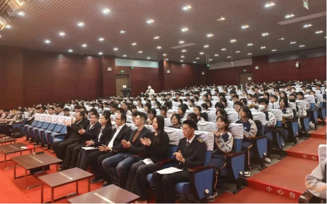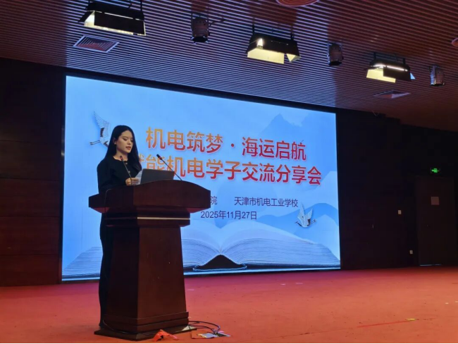 现就读于天津海运职业学院的两位机电学校毕业学子登台分享亲身经历。2024届毕业生沈家慧生动地讲述了她从机电校园到海运学院的成长轨迹,分享了她在专业社团与实训项目中实现技能飞跃的历程;西藏班2025届毕业生次仁顿珠则深情地畅谈了求学路上的坚持与收获,展现了准军事化管理所塑造的自律品格与责任担当,其奋进的故事引发了全场的强烈共鸣。