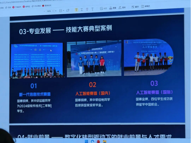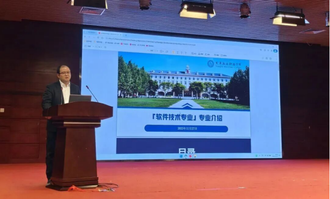 作为分享会核心环节,天津海运职业学院信息工程系软件技术教研室主任金柳柳老师精彩剖析专业特色。专业以数字化转型为引领,提供包括应用软件开发、Web与移动互联网开发、软件测试与运维在内的多元化方向。课程涵盖Java、Python等主流语言,以及人工智能、大数据、鸿蒙系统等前沿技术。依托国家超算中心与中软国际共建的实训基地,学生能够亲身参与真实项目开发,通过岗位实习无缝衔接校园与职场。最后金柳柳老师精彩呈现了骄人的成绩:学生们在世界职业院校技能大赛中斩获国家级铜牌及省级一等奖,充分彰显了他们扎实的技术功底。