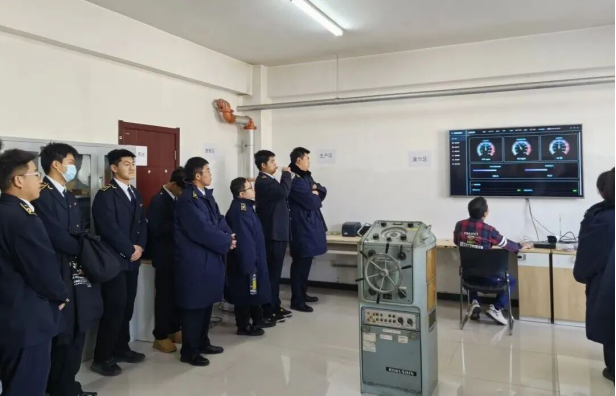 在天津大海电信科技有限公司,师生们参观了公司的船舶通信设备研发中心。特别值得一提的是,在该公司的信息工程系2023级实习生张翔智,为学弟学妹们详细讲解了公司自主研发的5G船用通信终端和防水导航模块等产品,使同学们深刻领悟到“技术创新赋能航海安全”的行业理念。在通导设备测试实验室,师生们亲身体验了各类船舶通导设备的调试操作,切实感受到这些装备在远洋航行中的关键保障作用。