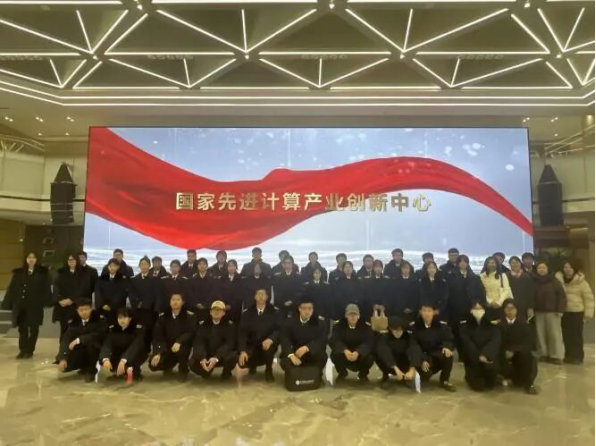 在中科曙光公司天津基地,师生们参观了中科曙光展厅和智能化工厂,了解了曙光的高端服务器支持气象预测、航空航天等国家级项目的优异性能。近距离接触了黑科技-液冷方案单机柜,其功率密度高达750kW,scaleX640超节点算力密度是同类产品的20倍,AI大模型训练因此大幅提速,让师生们深刻体会到国产化研发中所蕴含的工匠精神。