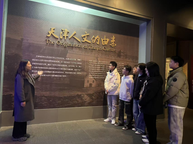 在天津博物馆内,同学们漫步于“天津人文的由来”和“中华百年看天津”等主题展厅。从古代文明的曙光,到近代中国历史的风云际会,一件件珍贵的文物、一幅幅生动的历史画卷,系统展示了天津作为国家历史文化名城的独特魅力与在中国近现代化进程中的重要地位。同学们时而驻足凝视,时而低声交流,深刻感受到了这座城市海纳百川、兼容并蓄的开放胸怀和厚重的历史积淀。