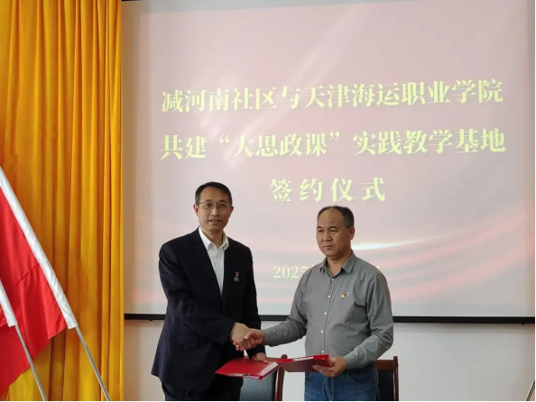 日前,天津海运职业学院与津南区小站镇减河南社区正式签署协议,共同建设“大思政课”实践育人基地。会议围绕“校社协同育人”“高校服务社区治理”和“社区助力应用型人才培养”等方面展开深入交流。