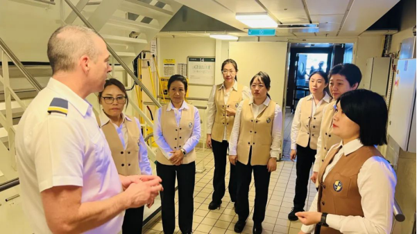5月1日,美国皇家加勒比海洋赞礼号邮轮再次停靠天津东疆国际邮轮母港,天津海运职业学院10名“双师双语双能”教师以“强化实战技能、衔接国际标准”为目标,登上美国皇家加勒比海洋赞礼号邮轮,开展为期6天的沉浸式岗位实践与能力提升培训。