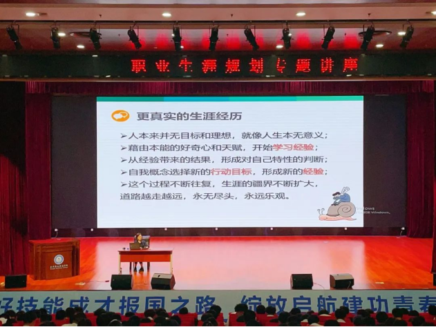讲座以“职业生涯规划及其意义”为开篇问题,深入剖析了大学生自我提升与职业规划的关键路径,从专业、家庭、兴趣、榜样等四方面引导学生探索职业发展,启发学生发现自我能力,找准自身优势和劣势,并引用案例,帮助学生分析确定不同阶段的职业目标,从而制定切实可行的行动计划,鼓励学生将个人梦想与国家和区域发展紧密相连,树立远大抱负,脚踏实地追逐梦想。
