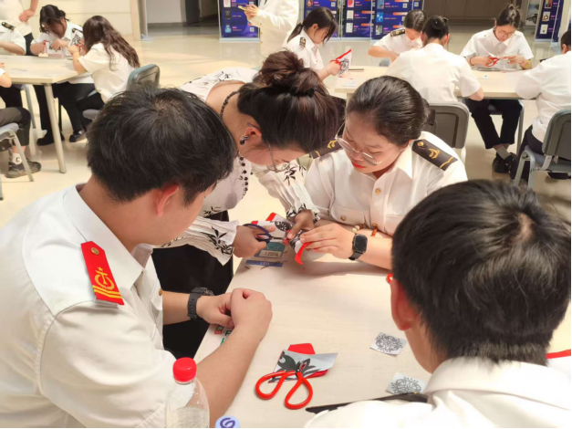最后,市级非遗剪纸传承人栾曼女士展示了廉洁文化经典剪纸作品,解读了剪纸中的廉洁基因,讲授了剪纸技艺,并指导参会人员围绕“海运清风”“社区廉韵”“职业素养”主题进行了剪纸创作。