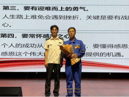 全国劳动模范、高级工程师、中交天航局通恒轮高级电机员赵银星老师,以“实干为炬照前程、奋斗作笔绘华章”为主题,用朴实真挚的语言分享了自己的成长故事,赵老师从点滴拼搏的积累、坚定信念的支撑、如山使命的担当三个方面,深情讲述了从初入行业的青涩到成为技术骨干的蜕变历程。充分展现了新时代劳模工匠爱岗敬业、勇于创新、甘于奉献的动人风采,唱响了劳动光荣、知识崇高、人才宝贵、创造伟大的时代强音,为学院学子带来了一堂兼具实践深度与精神高度的“匠心大课”。赵银星老师满怀深情地勉励在场学子要夯实专业根基,锤炼一专多能的过硬本领;要脚踏实地,始终保持勤学善思、知行合一的优良作风;要传承和弘扬新时代工匠精神,努力成长为堪当民族复兴重任的时代新人。