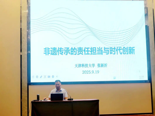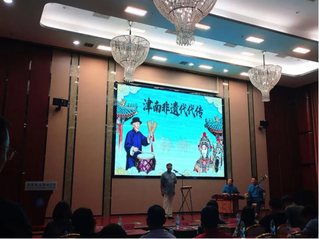 活动邀请了天津科技大学艺术设计学院副院长、非物质文化遗产研究中心和“轻工类产品创意设计”特色学科群负责人张新沂副教授开讲《非遗传承的责任担当与时代创新》,为在场的师生代表和津南区非遗传承人分享了非遗传承的现状、面临挑战、非遗传承的创新思路。课后展演期间,非遗剪纸服装走秀节目给大家带来了一场视觉盛宴,董派京东大鼓传承人刘炳山登台献唱《津南非遗代代传》,报告厅内一阵阵雷鸣般的掌声,就是对文化自信最好的诠释。