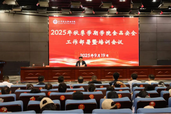 为深入贯彻落实国家和我市关于校园食品安全的决策部署,9月19日,学院专题召开2025年秋季学期食品安全工作部署暨培训会议。副院长张雷、后勤与基建管理处相关同志、各餐饮企业负责人和一线从业人员共150余人参会。