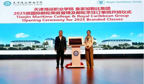 9月22日,天津海运职业学院与皇家加勒比集团举行2025级国际邮轮乘务管理及邮轮烹饪专业订单班开班仪式。仪式以“扬帆启航,共育未来”为主题,学院院长于忠武、副院长王明春、皇家加勒比集团全球资源与项目总监范雪菲、校企合作项目高级经理Garima Nanda出席仪式。企业代表、邮轮旅游系教师、毕业生代表及全体订单班学生共同参与。