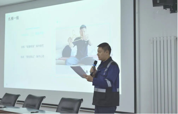 仪式在庄重而热烈的氛围中拉开帷幕。劳务发展公司先进典型代表、国务院特贴专家尹明率先进行经验分享,以其在天津港十八年的成长经历,生动诠释了“工匠精神”的深刻内涵。他深情回顾了从一名普通技工成长为大国工匠的历程,特别分享了参与桥吊自动化改造项目的宝贵经验。“每一次设备调试、每一次技术攻关,都是积累经验的最佳时机。只有深入一线,才能真正理解智慧港口的运作逻辑。”他表示:“智慧港口建设对岸桥司机提出了更高要求,我们既要传承好传统技艺,更要主动适应技术创新。”这番真挚的分享,为订单班学员树立了扎根一线、精益求精的实践标杆。随后,4位订单班学员代表结合一个月来的培训经历,分享了各自的收获与感悟。他们纷纷表示,通过系统的安全培训和岗位实操,不仅掌握了设备操作技能,更完成了从在校学生到准港口人的身份蜕变。他们的发言中已能娴熟运用职业语言进行专业表达,展现出职业素养的显著提升。在深入码头一线的实习过程中,学员们对“工匠精神”有了更深刻的理解,纷纷表示要将尹明师傅“稳准快”的操作标准作为职业追求。通过理论与实践的结合,学员们既巩固了专业知识,又增强了岗位认同感,决心以精湛技艺和责任担当为天津港的现代化建设贡献青春力量。