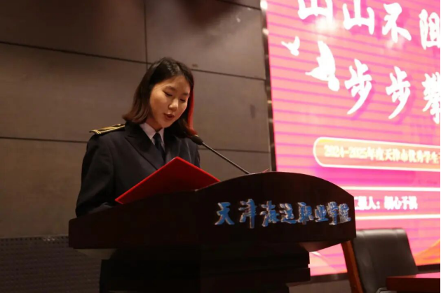 经各教学系推荐,参评天津市“优秀学生”“优秀学生干部”及“大学生年度人物”的候选人依次上台,从思想品德、学业成绩、学生工作、社会实践及志愿服务、准军事化管理等多个维度,全面而生动地展示了各自的成长轨迹与突出事迹。他们中,有学业成绩名列前茅的“学霸”,有在专业赛事中斩获奖项的“竞赛达人”,有默默奉献、服务同学的“贴心干部”,也有在志愿领域发光发热的“公益之星”。每一位候选人的陈述都饱含激情,展现了新时代青年学子的责任、担当与梦想。