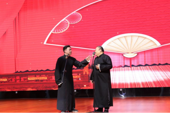 本次活动作为学院“美育浸润月”系列活动的重点内容之一,形式多样、内容精彩,为师生呈现了一场高水平的国粹艺术盛宴。演出在杨佳东带来的快板《劫刑车》中拉开帷幕,节奏明快、表演生动,迅速点燃了现场气氛。韩奇雅演唱的京韵大鼓《丑末寅初》,以其宽厚嗓音与沉稳台风,展现了传统曲艺的深厚魅力。崔哲与张弛合说的相声《开心一刻》,贴近生活、幽默诙谐,赢得阵阵掌声与欢笑。最后,刘迎与刘渤扬两位国家一级演员联袂演绎的天津时调《放风筝》,嗓音清亮、表演细腻,将整场演出推向高潮。