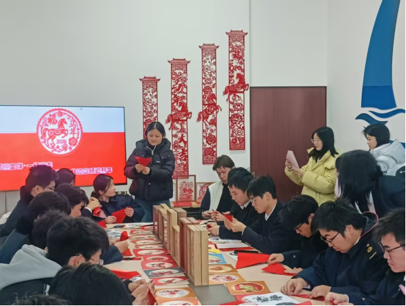 活动紧紧围绕习近平总书记2026年新年贺词中“让我们拿出跃马扬鞭的勇气,激发万马奔腾的活力,保持马不停蹄的干劲”的殷切寄语,将生肖文化与非遗技艺深度融合。现场,在信息工程系陆彦丞、宋卓轩和邮轮旅游系张雨荷、勾溪宇四名同学的指导下,红纸翻飞、剪刀轻舞,大家专注钻研折叠、裁剪技巧,参加活动的领导老师不时驻足观看,并与同学们交流创作思路。