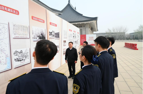 祭扫仪式后,队员们走进革命烈士纪念馆,开展“行走的思政课”。在带队老师的引导下,大家驻足凝视珍贵的历史文物与图片资料,重温那段烽火连天的峥嵘岁月。天津海运职业学院国旗护卫队队长张梓轩在参观后动情地说:“作为国旗护卫队队员,守护的不仅是国旗,更是先烈们用鲜血换来的山河无恙。”这次联合祭扫让我们深刻体会到,爱国不是一句口号,而是融入血脉的信仰与责任。