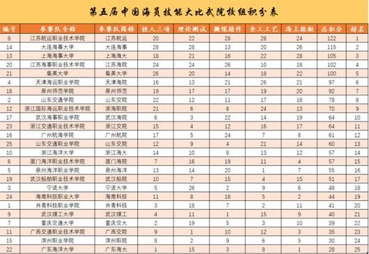 6月25至28日,由国家海事局、中国海员建设工会主办的第五届中国海员技能大比武活动在浙江舟山群岛新区举行。来自全国13家中央、地方航运企业和30所航海院校的代表队(其中包括港澳台海员工会组织的5支航海院校代表队)共486名选手参加了比赛。“一带一路”沿线国家新加坡两大海员工会组织和国际劳工组织首次派员观摩。经过激烈艰苦角逐,我院荣获院校队组团体二等奖,其中撇缆操作、金工工艺、海上操艇三个项目分别获单项奖,取得了历史性突破。