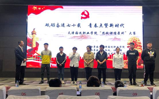 为深入学习宣传贯彻习近平新时代中国特色社会主义思想和习近平在学校思想政治理论课教师座谈会上重要讲话精神,充分发挥思想政治理论课铸魂育人的重要作用,坚持理论性和实践性相统一,把思政小课堂同社会大课堂结合起来,创新学生参与思想政治理论课教学的途径与方法,4月16日,“砥砺奋进七十载青春点赞新时代”2019年天津海运职业学院“思政课情景剧”大赛在学院报告厅成功举办,此次大赛由教务处、社科部(体育部)承办,航海技术系党支部协办。