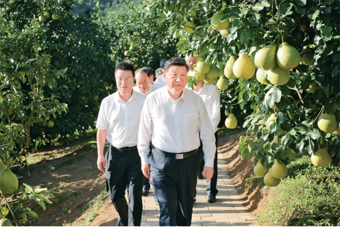 2025年11月7日至8日,中共中央总书记、国家主席、中央军委主席习近平在广东考察。这是7日下午,习近平在梅州市梅县区雁洋镇南福金柚种植基地考察。新华社发 肖翊/摄