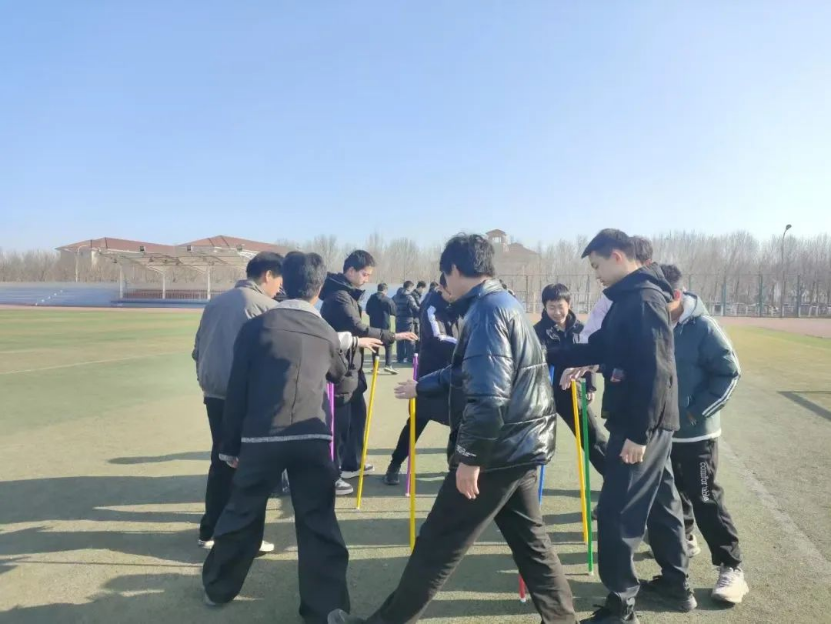 活动设置“同心鼓”“不倒森林”“能量传输”三项团队竞赛项目,巧妙地将航海专业技能的锤炼与心理素质的培养融为一体,旨在打造一支支兼具实力与韧性的航海精英团队。在“同心鼓”环节中,学生通过协同控制鼓面节奏,强化集体协作能力。“不倒森林”项目模拟突发状况下的团队配合,考验成员反应与默契,团队成员迅速调整步伐,紧密配合。而“能量传输”环节以接力传递的形式,强化责任意识。三支队伍在竞赛中展现出的高效沟通与策略执行能力,充分体现了航海专业所需的团队精神。
