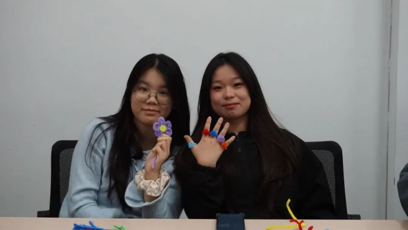 活动伊始,心理协会社团负责人详细讲解了扭扭棒手工制作的流程与技巧,让学生们了解到如何将普通材料转化为精致的暖心作品。接到制作工具与材料后,同学们迫不及待地投入创作,他们充分发挥想象力和创造力,通过裁剪、弯折、缠绕、拼接等手法,将扭扭棒制作成栩栩如生的花枝、独具风格的个性饰品和实用的创意摆件。