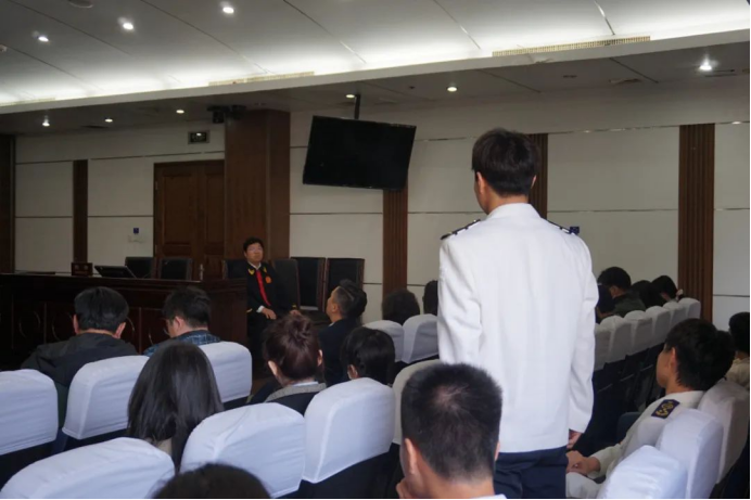 上午8:50,社团成员身着统一制服,与行业协会专家、企业代表共同进入天津海事法院(滨海新区第二大街75号)第六审判庭。庭审过程中,成员们认真记录案件争议焦点、举证质证流程及法律适用要点,并围绕“运费拖欠争议点”“企业如果有效规避运费拖欠风险”等专业问题展开实时讨论。休庭期间,海事法院法官结合案件特点,为社团成员解析《中华人民共和国海商法》第87条关于运费请求权的规定,以及《中华人民共和国民事诉讼法》中证据链构建的关键要素,现场互动气氛热烈。