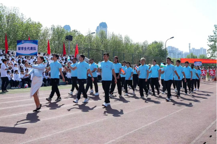 在雄壮嘹亮的乐曲声中,国旗护卫队、院旗院徽方队、旗海方队、各系代表队、留学生方队、分工会教职工代表及裁判员方队依次通过主席台接受检阅,展现出顽强拼搏、奋勇争先的精神风貌,赢得了在场师生的阵阵喝彩。