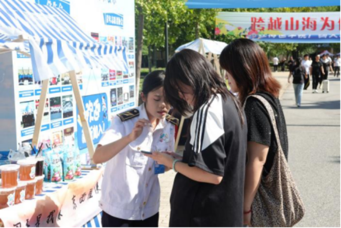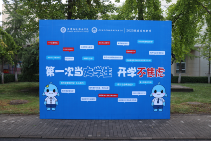 院团委为让新生感受校园温暖,精心筹备,和吉祥物“海小青”与“海小团”共同为新生准备开学礼包。礼包中包含团宠主题钥匙链与贴纸作为纪念,并特别为新同学及家长准备了助农产品香甜的苹果干、天津特产十八街麻花,以及冰镇酸梅汤。这些满载心意的迎新礼物,使新生在入学之初即体验到团委的热情与关怀,助力其更快融入海运大家庭。