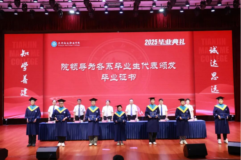 盛夏如约,骊歌声起。7月5日,天津海运职业学院2025届学生毕业典礼在水上教学训练中心报告厅举行。学院领导班子成员、各教学系部和职能部门领导、辅导员、家长和校友代表等齐聚一堂,共同见证2025届毕业生圆满完成学业、开启人生崭新篇章。学院副院长王明春主持毕业典礼。
